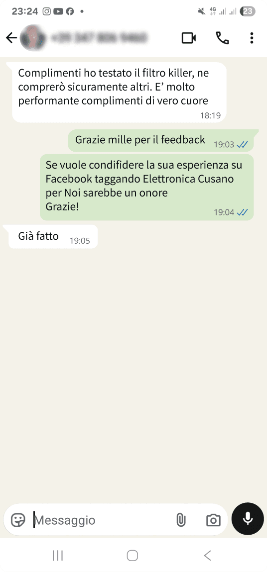Supporto diretto 7/7 tramite linea dedicata e canale WhatsApp riservato. Tempi di risposta media: entro 5/10 minuti nelle ore lavorative. Possibilità di sessioni tecniche in video-call per installazioni complesse.