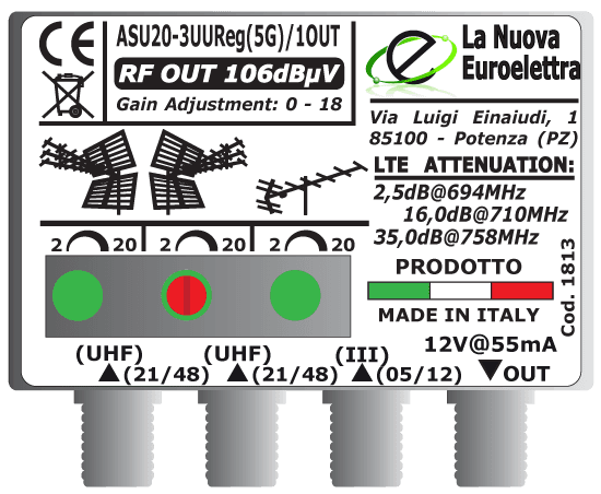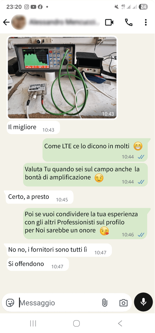 Ogni amplificatore e filtro 5Gviene collaudato singolarmente (test 100%) prima della spedizione. Difettosità storica inferiore allo 0,2% (2 su 1000 pezzi).