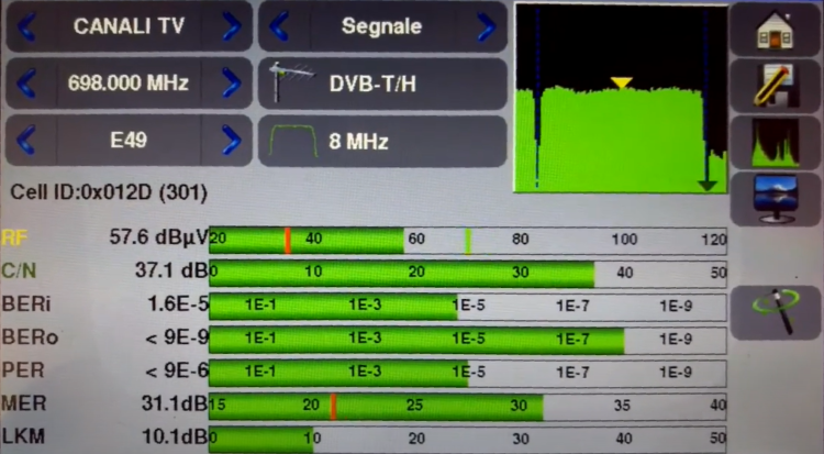 Per misurare questi parametri con precisione, i tecnici devono utilizzare misuratori di campo TV professionali. Solo questi strumenti consentono la verifica immediata di potenza, C/N, MER, BER e la visualizzazione dello spettro per identificare interferenze.