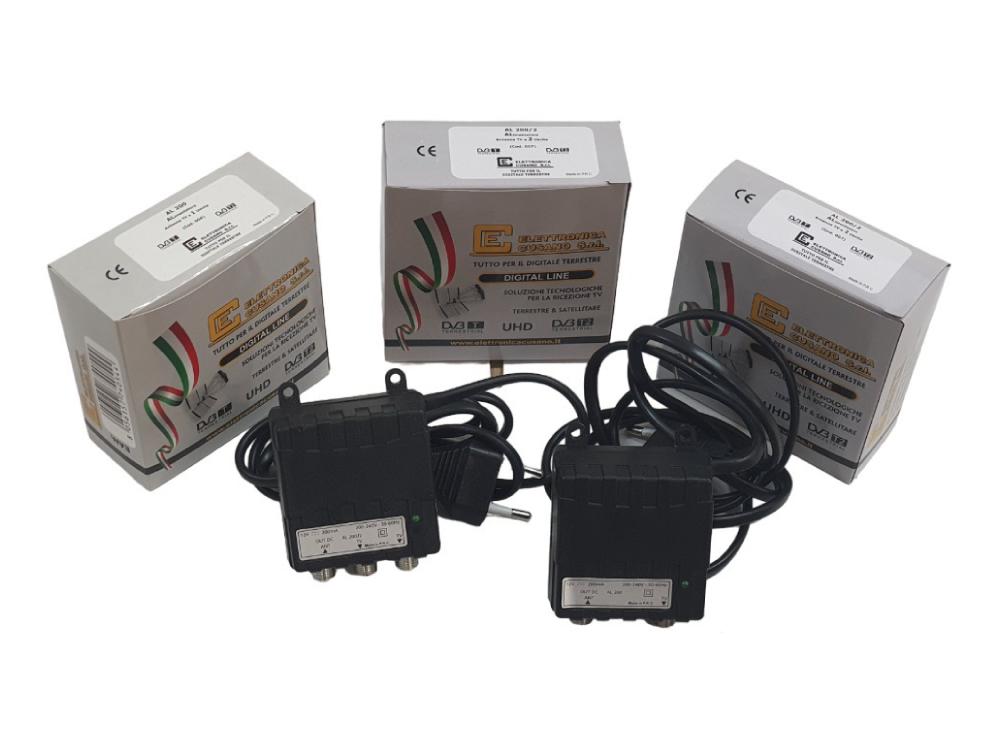Assortimento Selezionato: Centralini di testa, Amplificatori, Alimentatori, Componentistica di distribuzione (Partitori/Derivatori).